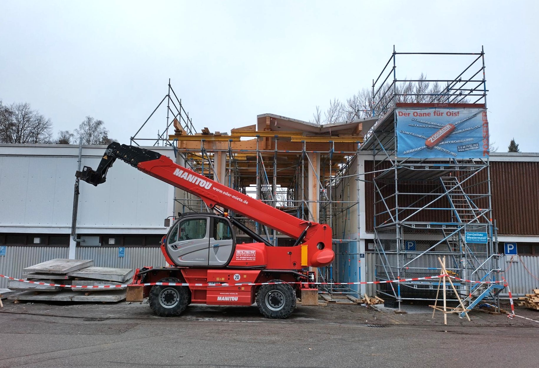 Der markante Eingangsbereich des Waldbades, der über viele Jahrzehnte das Erscheinungsbild der Anlage geprägt hat, musste bereits aus Gründen der Standsicherheit zurückgebaut werden. Im Rahmen einer Überprüfung vor der Badesaison 2025 wurden erhebliche statische Mängel festgestellt. Um den Betrieb zunächst abzusichern, wurde der Eingangsbereich inklusive Vordaches vorübergehend mit einer Holzständerkonstruktion verstärkt. Im November/Dezember 2025 erfolgte jetzt der Abriss des Eingangsbereiches.